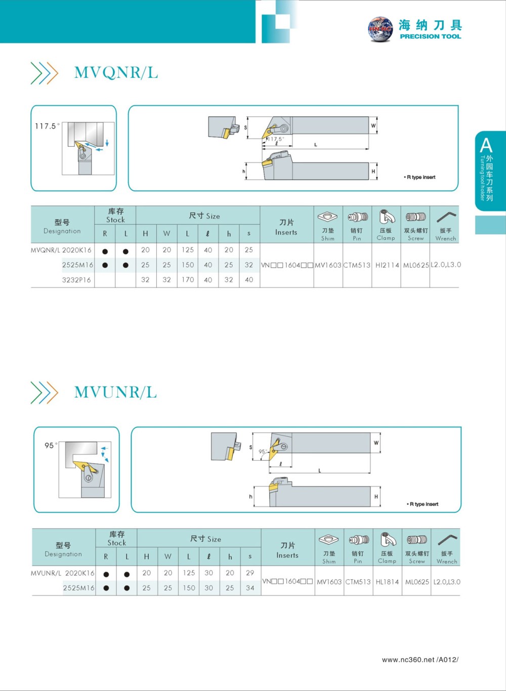 HN.NC海纳数控车刀杆MVQNR/L外圆车刀杆