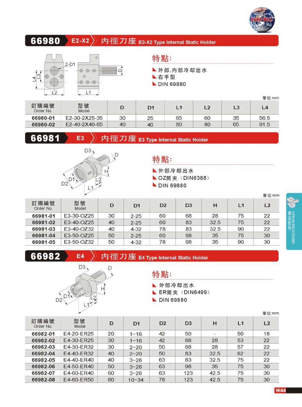 VDI E8左侧双孔内径刀座DIN69880多工位车刀座