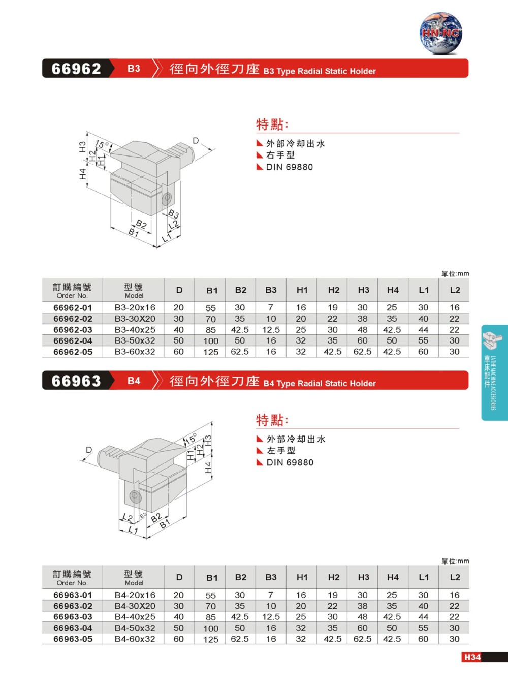 VDI E8左侧双孔内径刀座DIN69880多工位车刀座