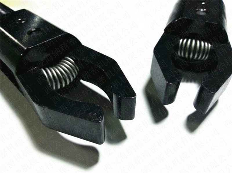 拉料器适用于数控车床及其他自动车床,装在拖板刀架上,拉棒料,不需工人上下料,可实现多次循环加工,提高数控车床的自动化程度,一个工人可以看多台数控车床。工作时,移动Z向拖板,将夹爪夹住棒料,松开卡盘或夹头,拖板走一个送料长度,夹紧卡盘或夹头,移开Z向拖板,就可以车削了。棒料较长时,主轴后端需做托架或料管。拉料器对中心,车一段比需送料棒料芯棒,夹在卡盘或夹头上,调整拉料器的两个爪子刚好都靠上芯棒,锁紧螺钉,就可以了。夹紧力大小通过增减碟簧来调整。