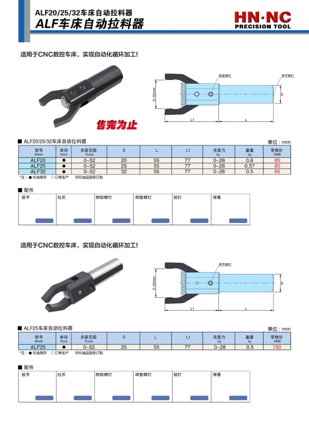 海纳数控车床自动拉料器自动拔料器拉料器圆柄拉料器ALF 20