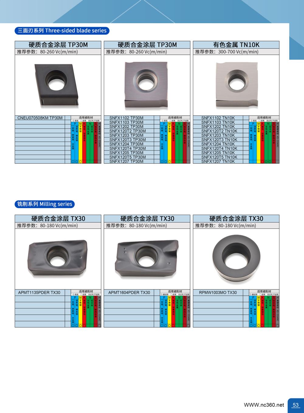 CNEU070508KM TP30M 硬质合金三面刃铣刀片