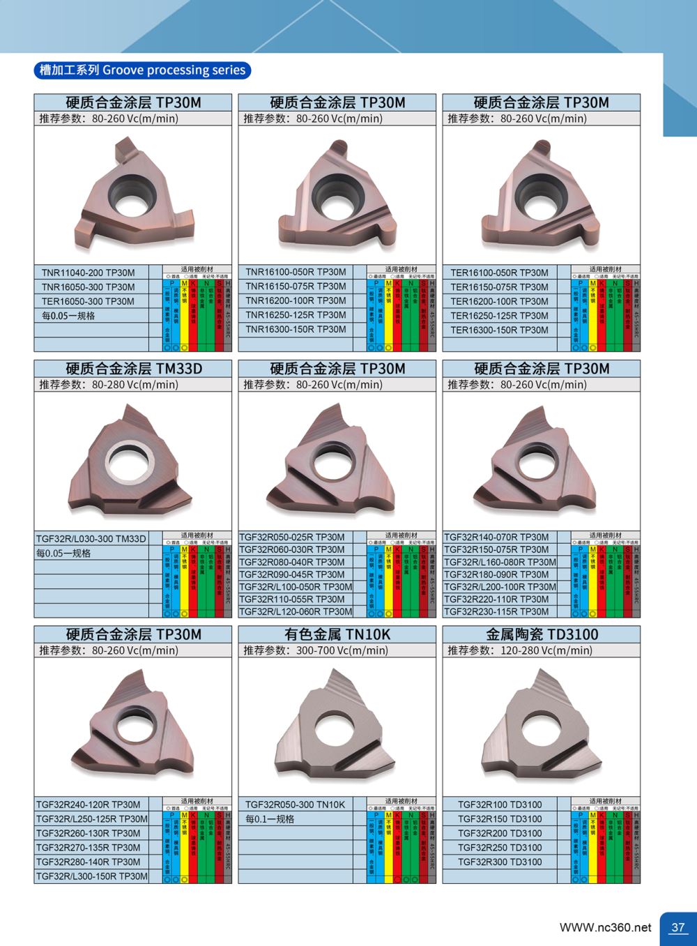 TGF32R090-045R TP30M 硬质合金涂层切槽刀片
