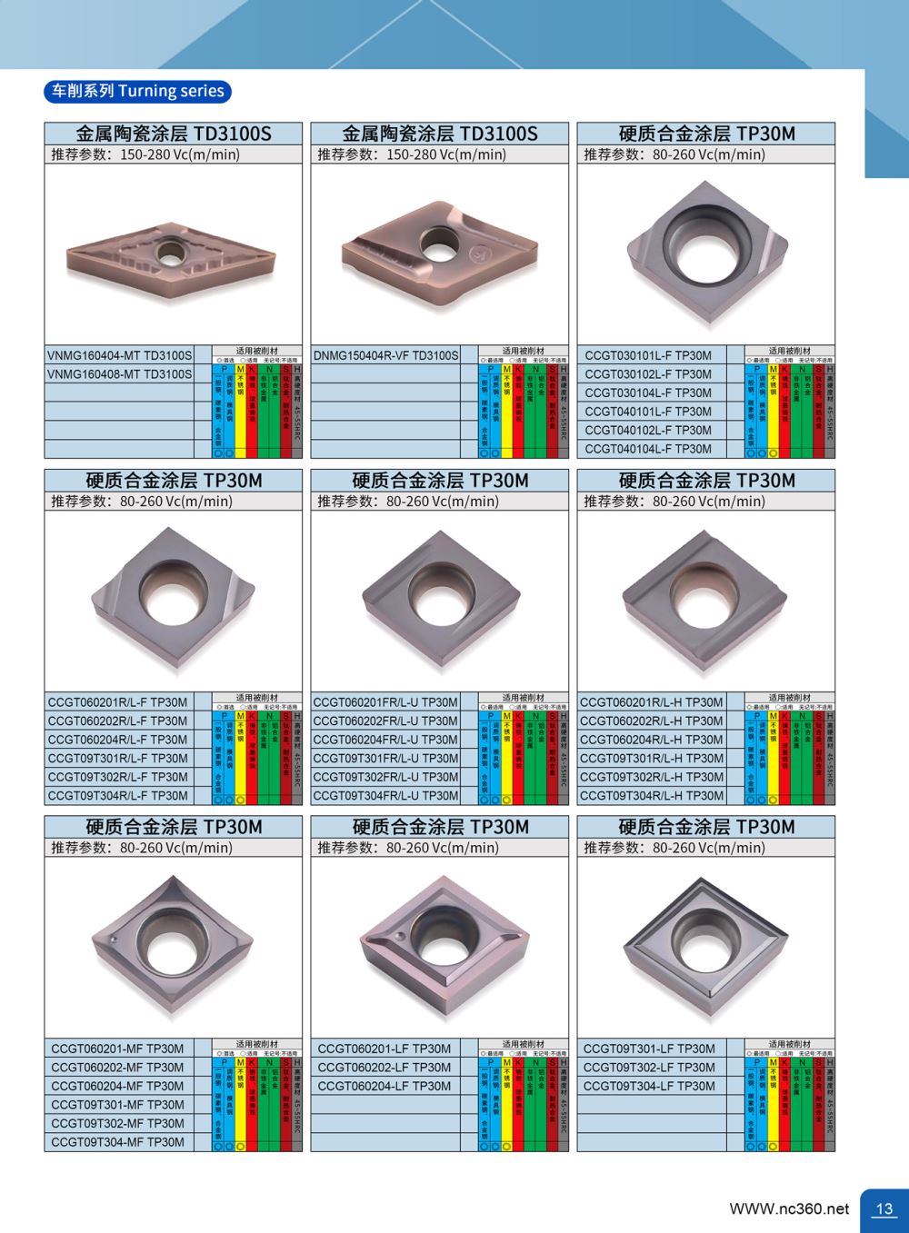 VBGT110301MP-MFQ TS30X 硬质合金涂层数控车削