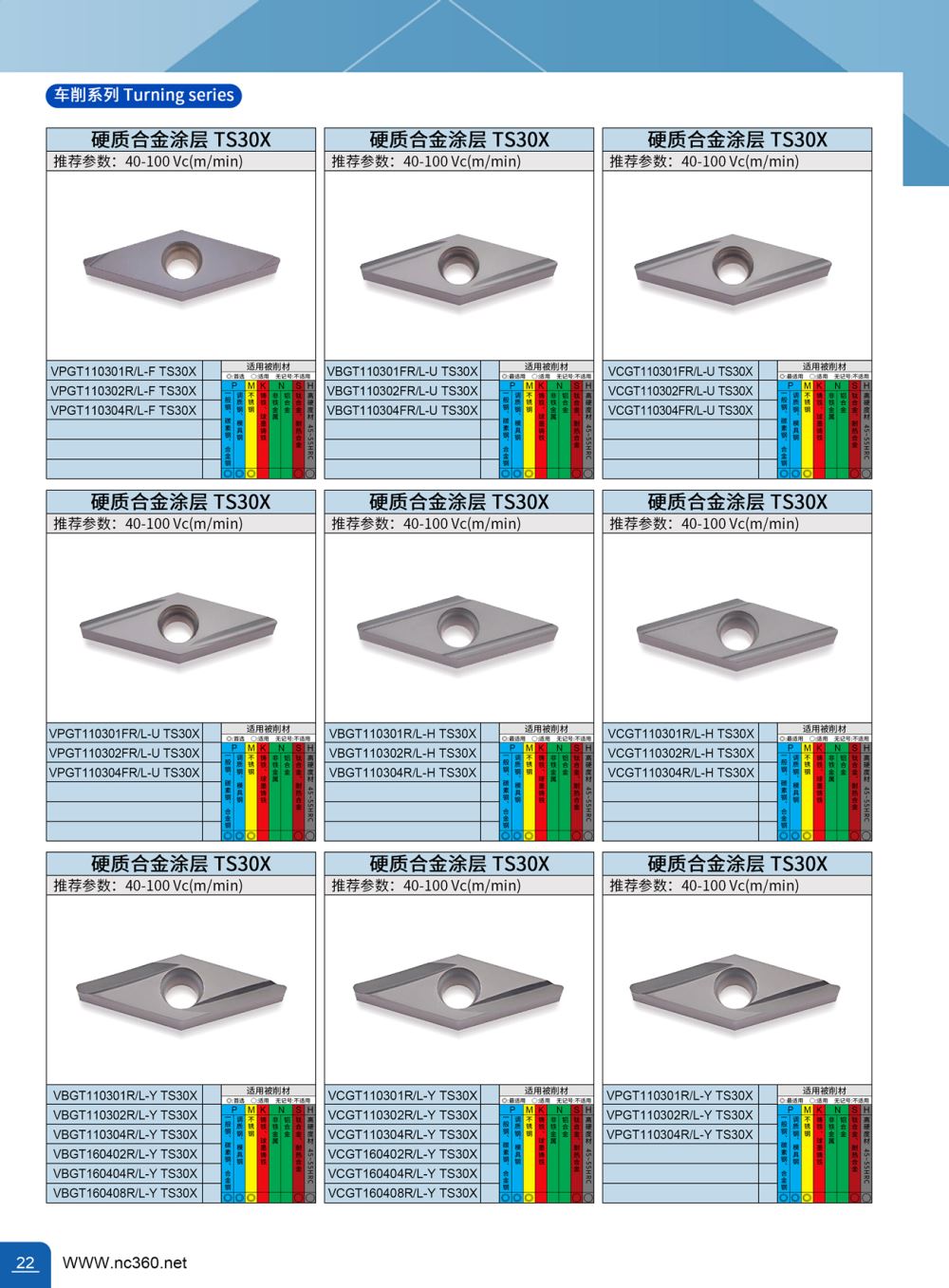 VBGT110301MP-MFQ TS30X 硬质合金涂层数控车削