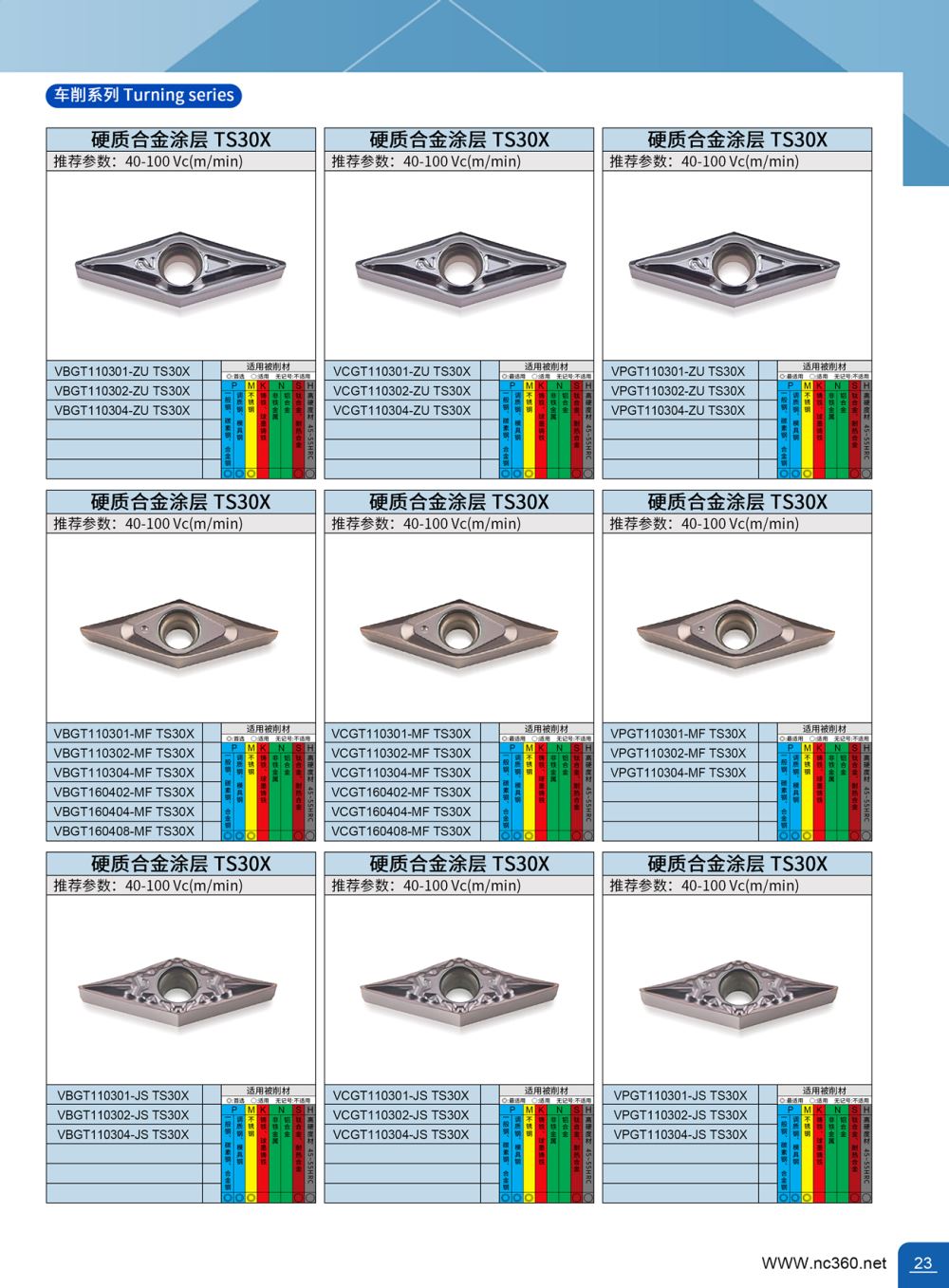 VBGT110301MP-MFQ TS30X 硬质合金涂层数控车削