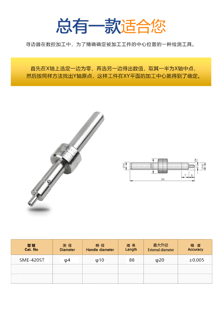 不锈钢偏心式寻边器SME-420ST