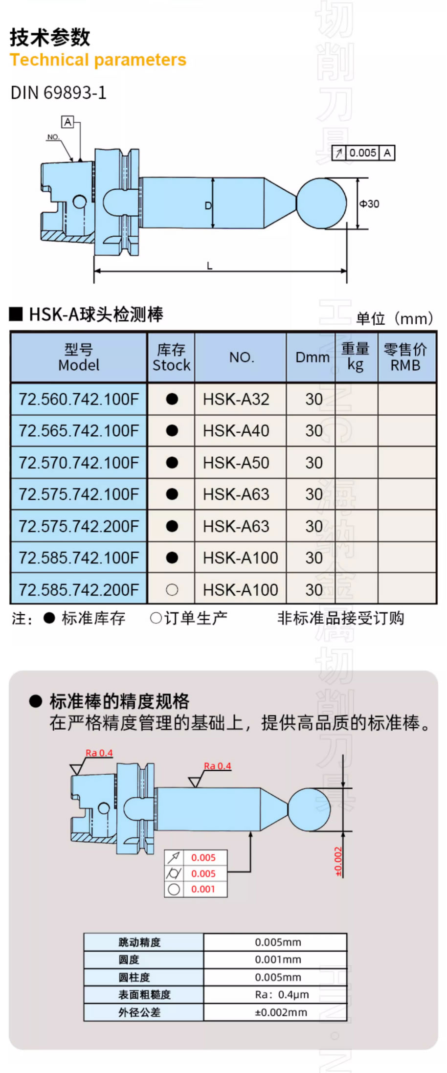 HSK50A五轴加工中心球头检测棒