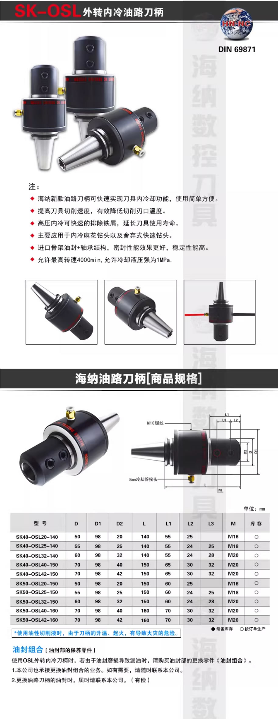 BT50-OSL加工中心高精度油路刀柄外转内冷高速高