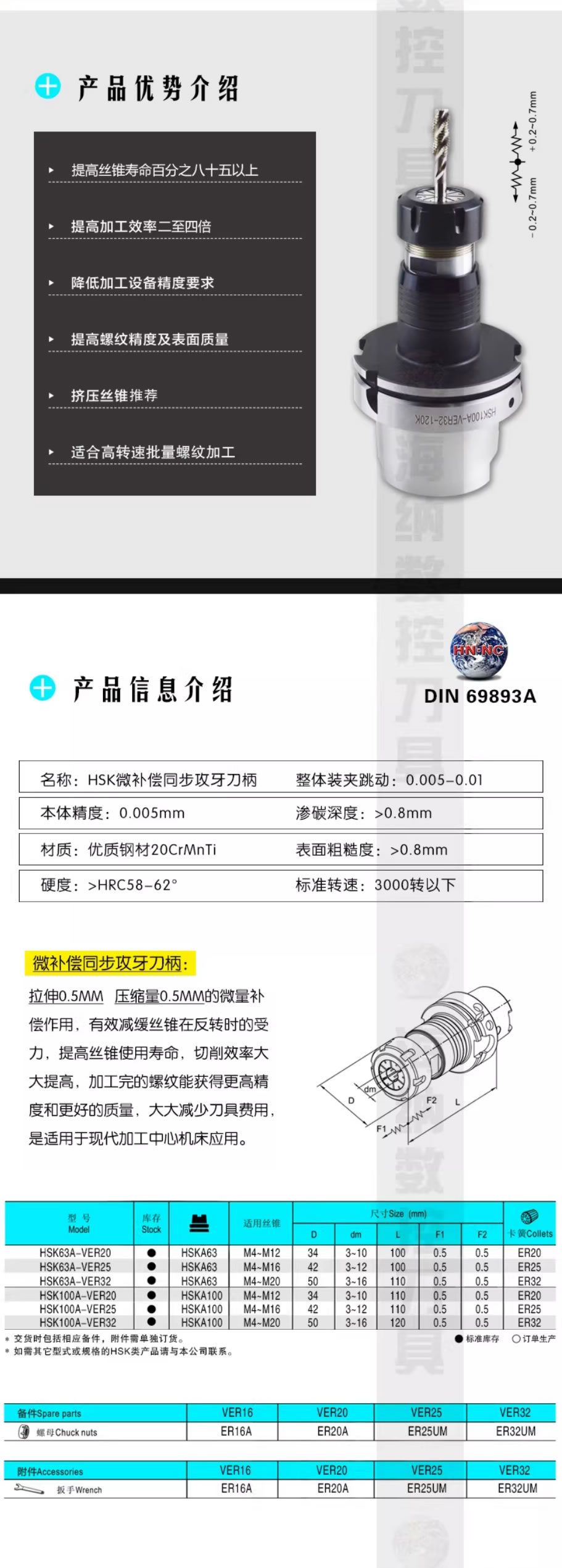 HSK100A-VER微量伸缩攻牙丝锥弹簧夹头刀柄