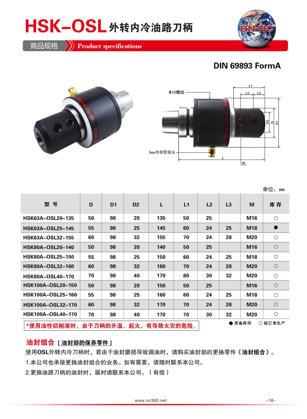 HSK63A-OSL外转内冷油路刀柄