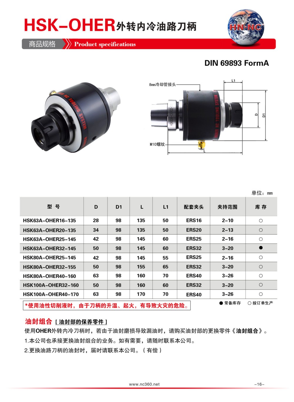 HSK100A-OHER外转内冷油路