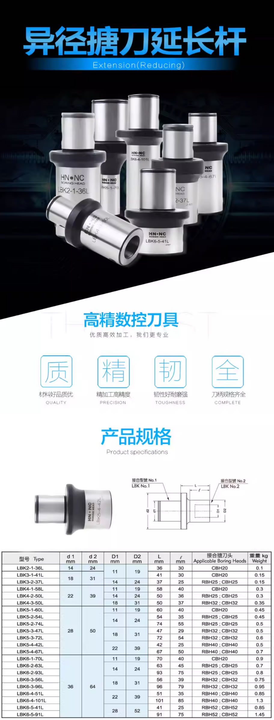 LBK6异径变径套大变小镗刀延长杆小变大DCK接长杆