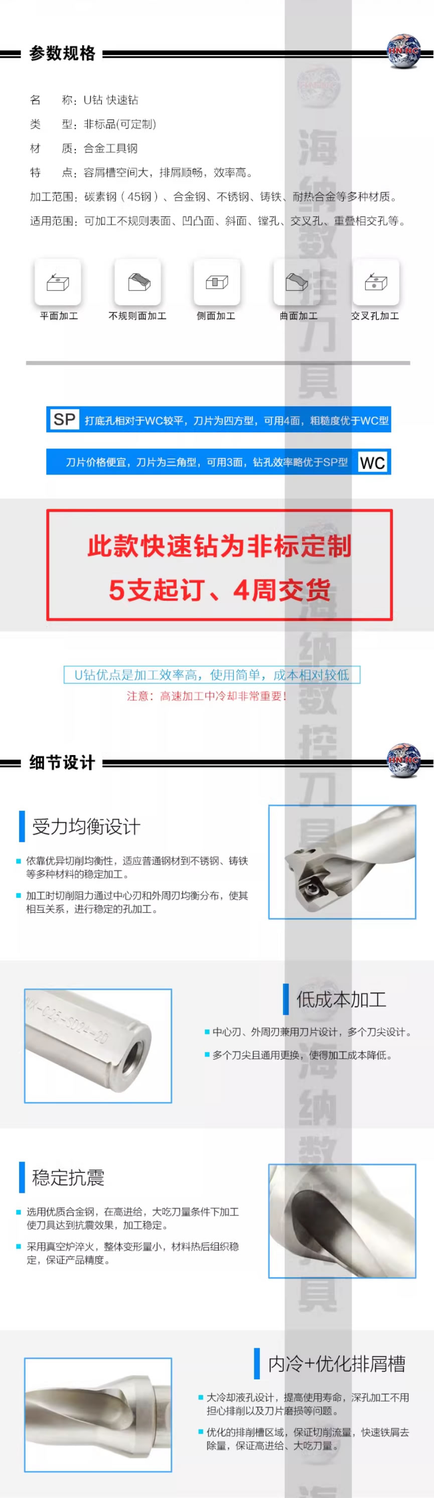 海纳订做非标舍弃式快速钻头暴力钻头U钻潜孔钻喷水可转位钻头