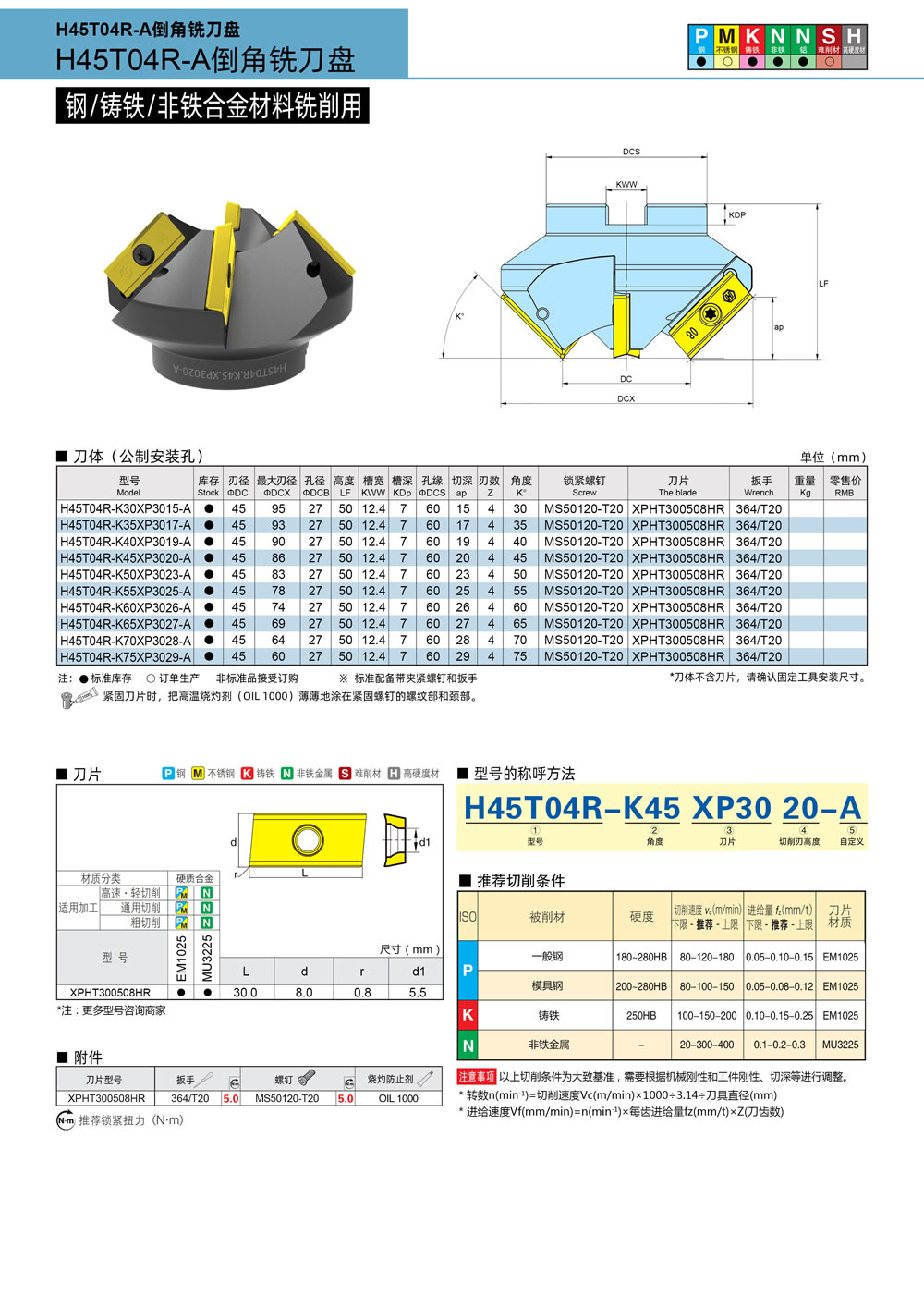 S80B08R-45SE13坡口倒角机专用铣刀盘高强度进口