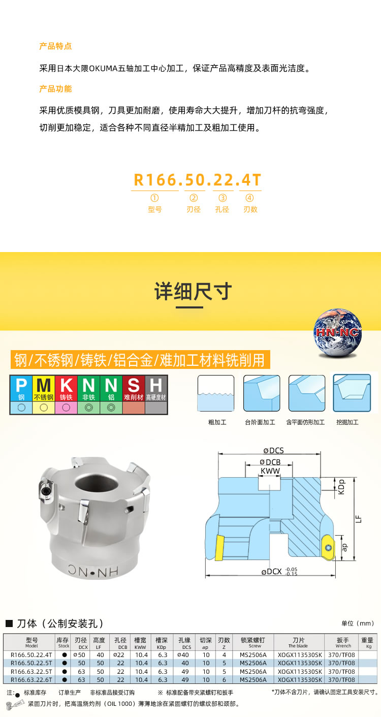 R166快进R3圆鼻铣刀盘