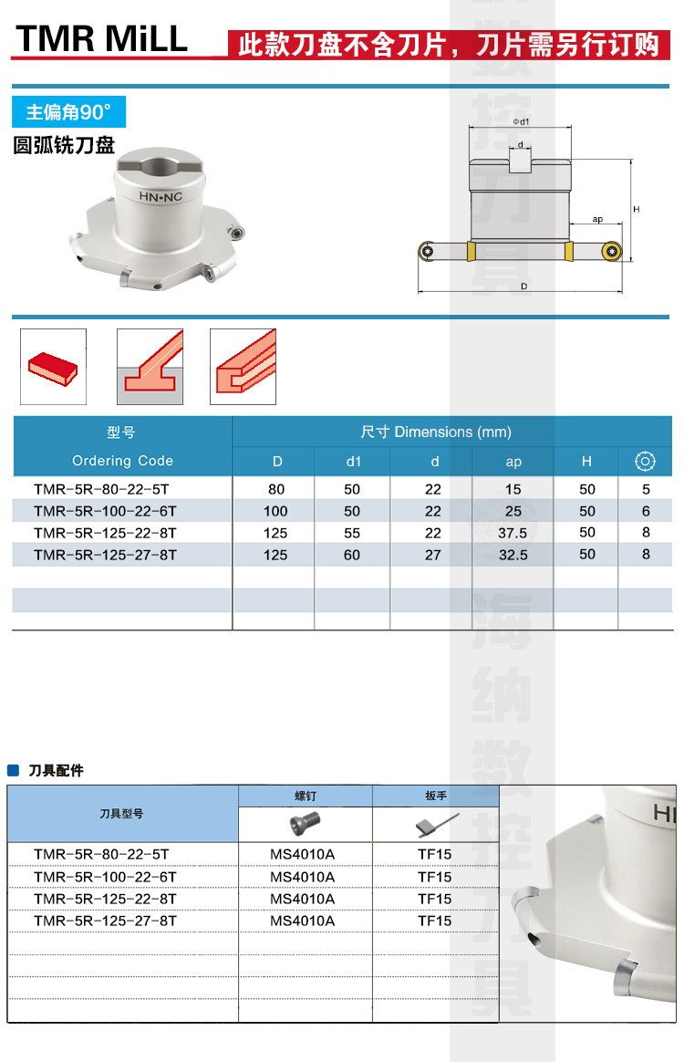 TMR-5R R5圆弧三面刃铣刀盘