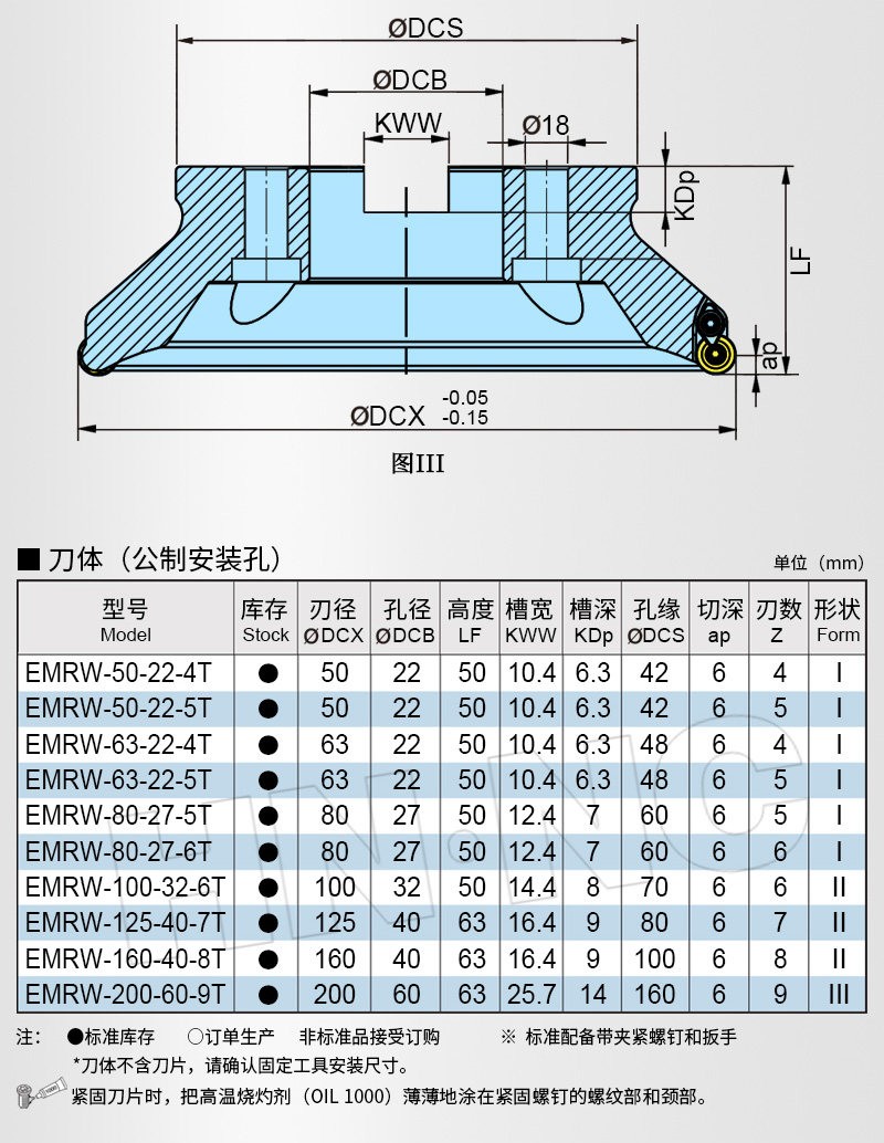 EMRW-R6 圆鼻快进给平面铣刀盘