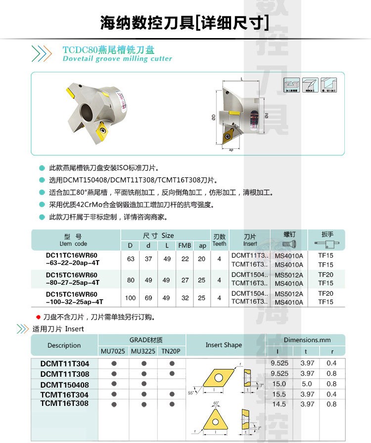 DCTCWR60度燕尾槽单角鸠尾槽铣刀盘
