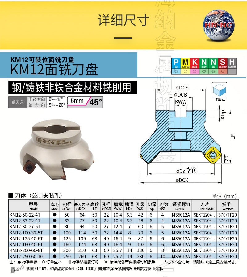 KM12 反向45度平面数控铣刀盘
