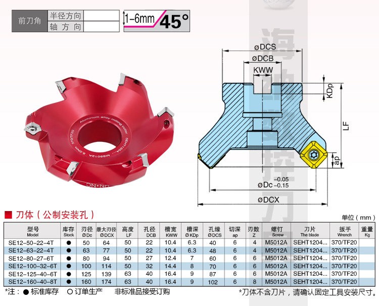 KM12 铝合金45度平面铣刀盘