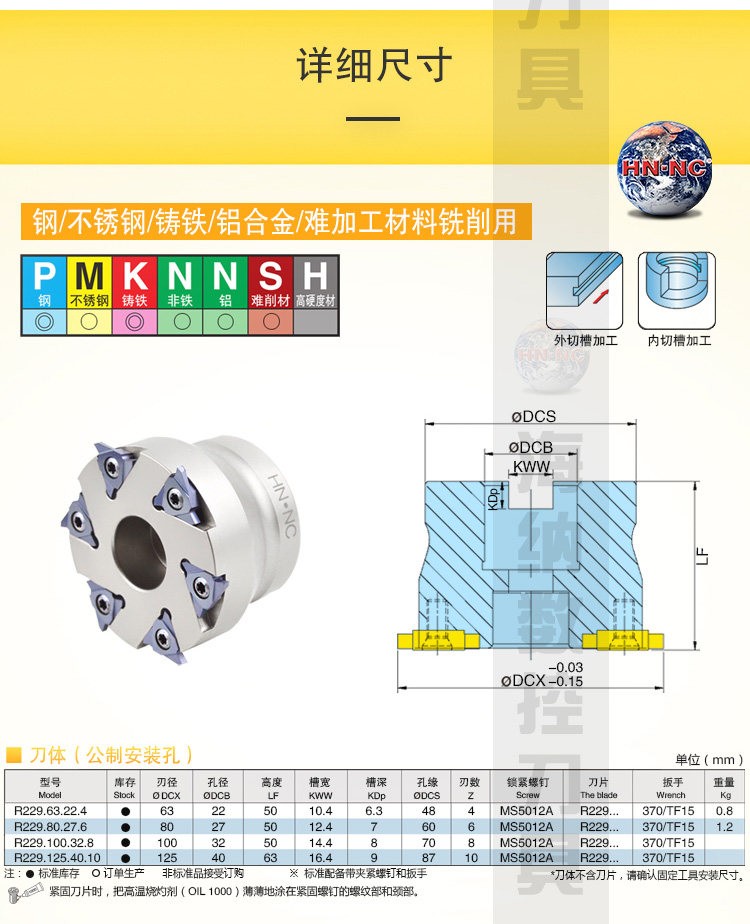 R229浅槽卡簧槽密封槽切槽铣刀盘