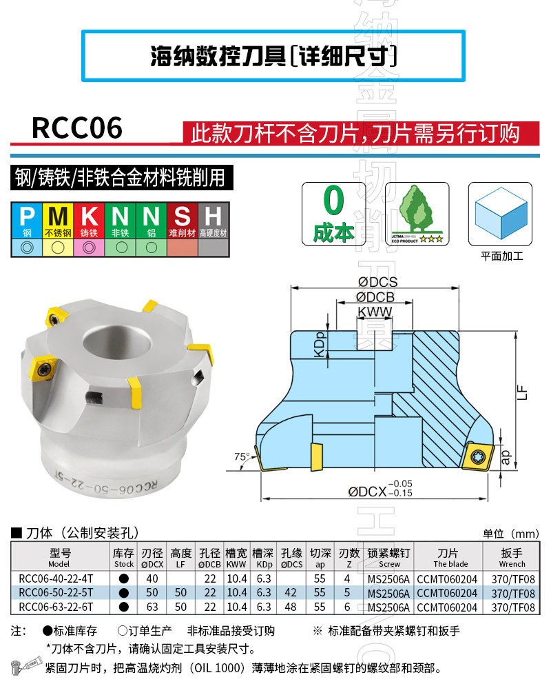 RCC06 75度平面铣刀盘