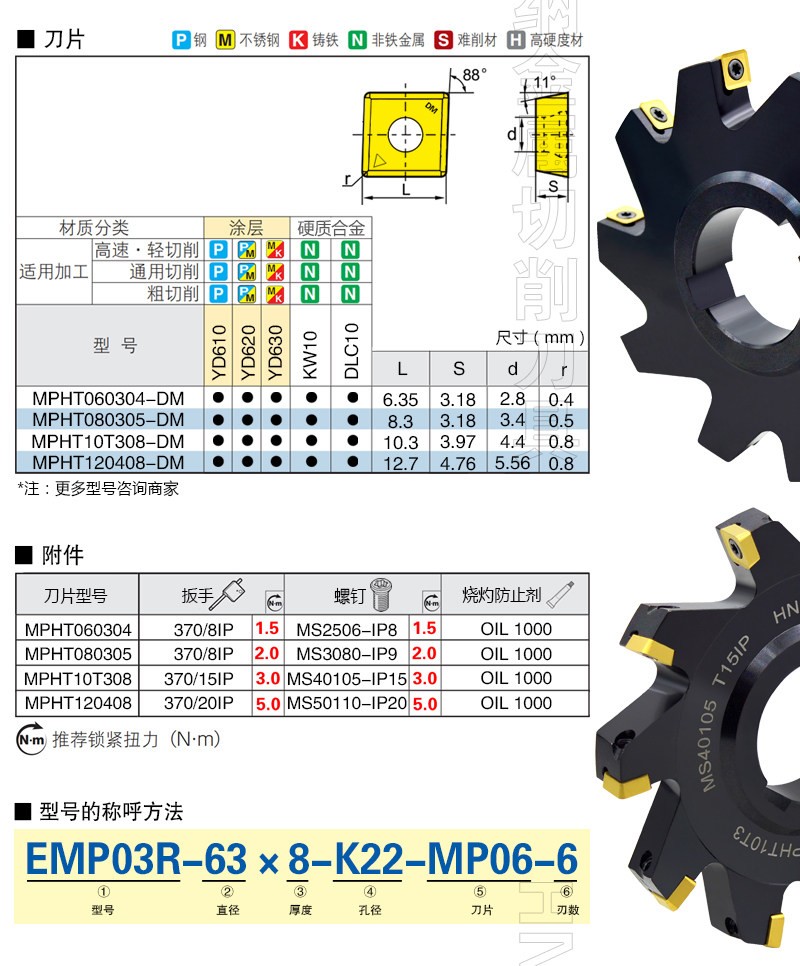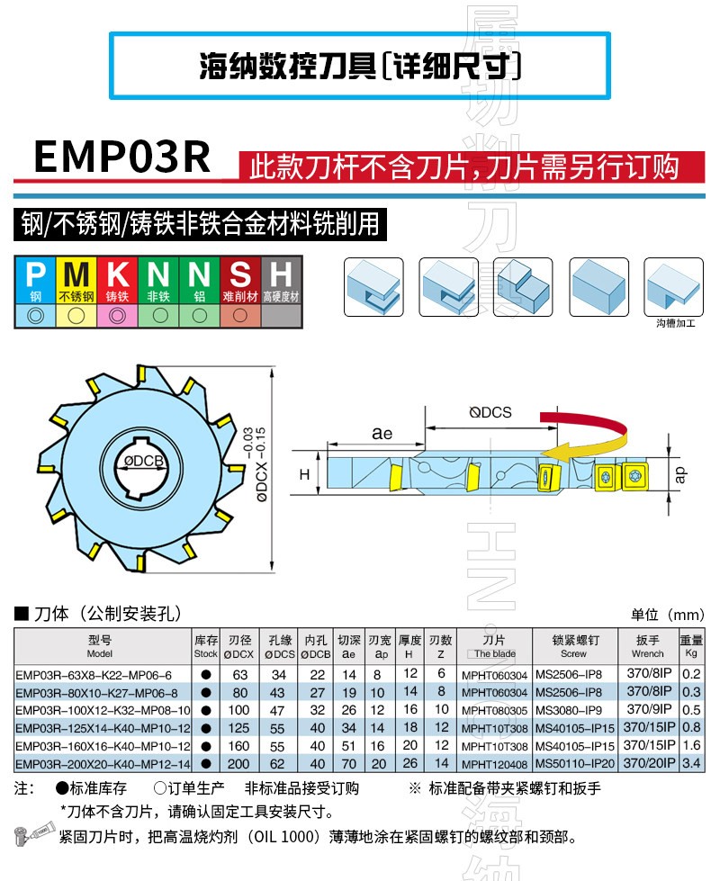 EMP03R两面刃侧铣背铣数控铣刀盘