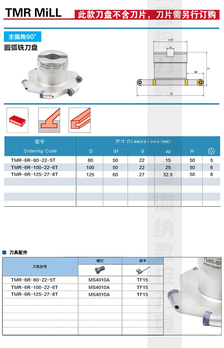 TMR-6R 圆鼻R6可转位三面刃铣刀盘
