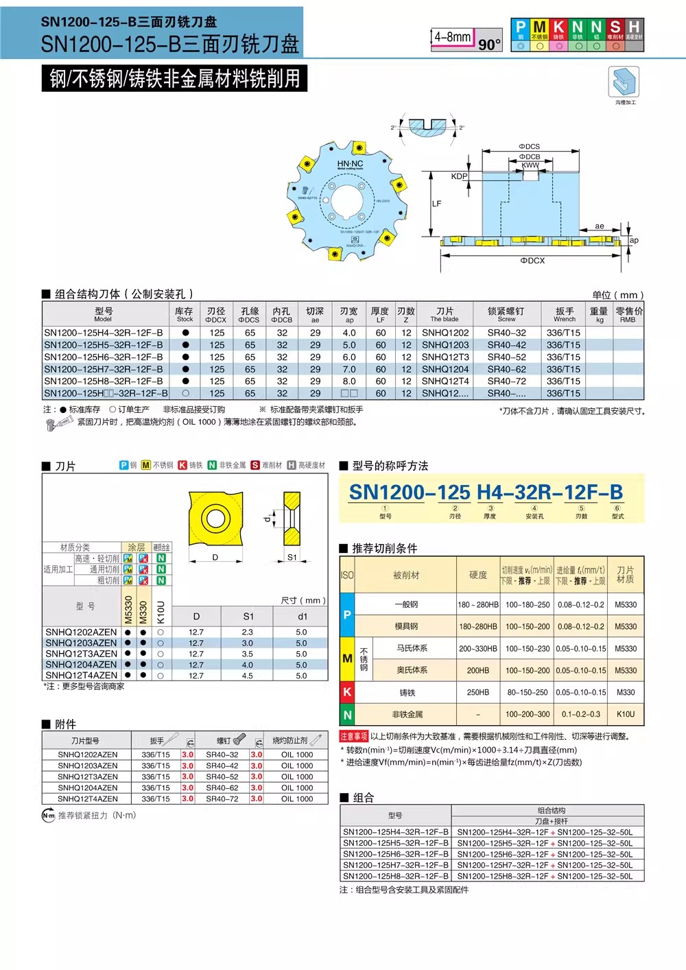 SVN4000三面刃切槽铣刀盘SNEN12数控刀片