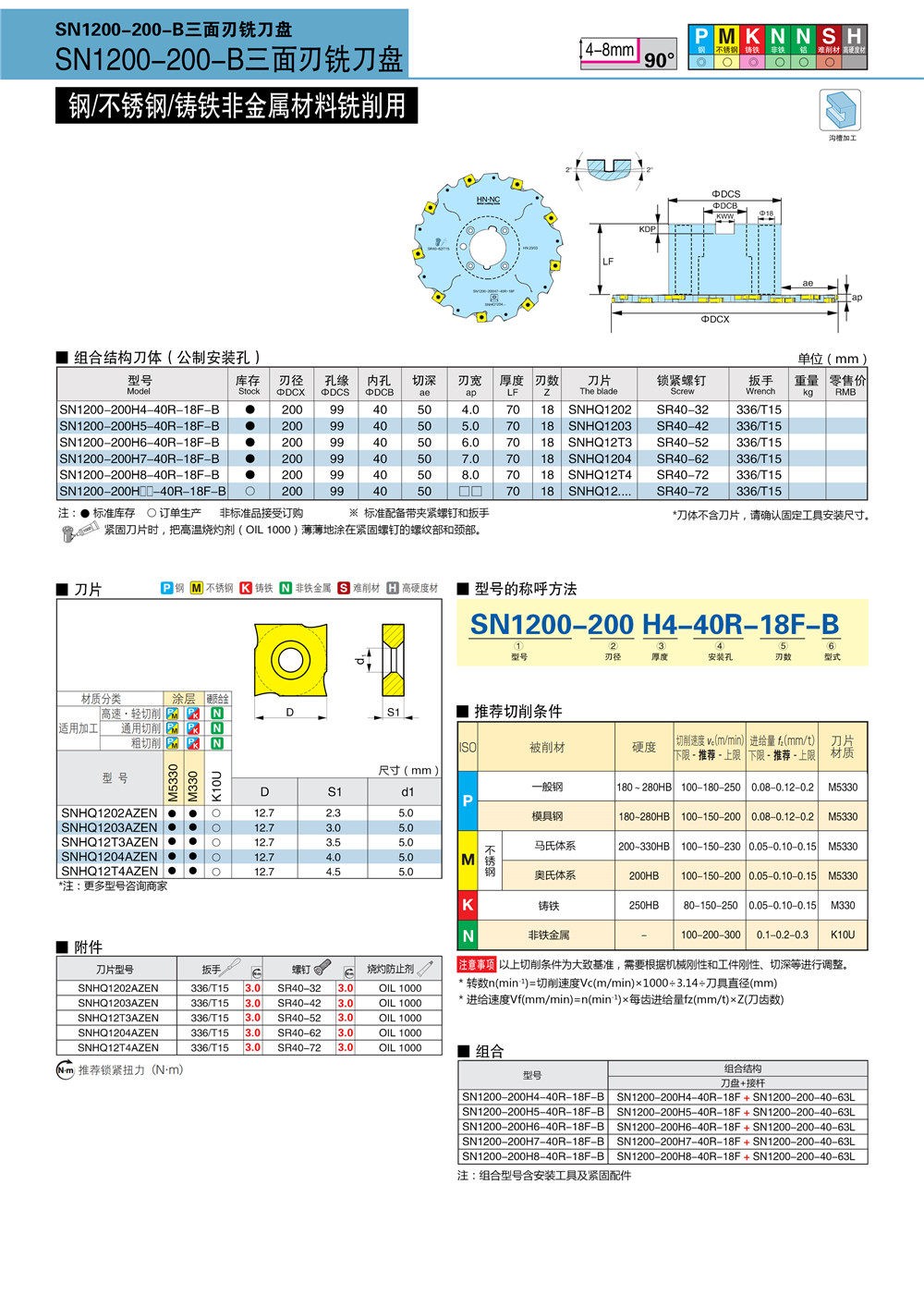 SN1200-200三面刃锯片铣刀
