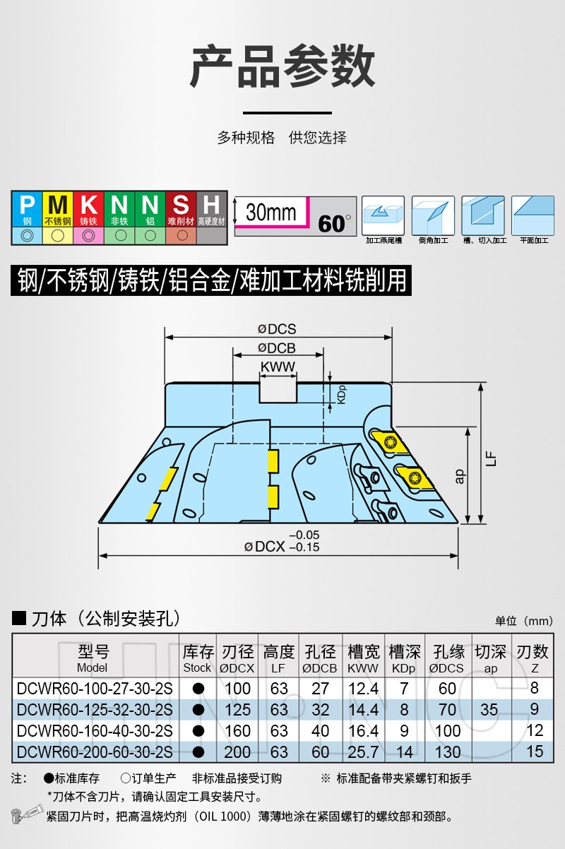 DCWR60加工中心机床燕尾槽可转位铣刀盘