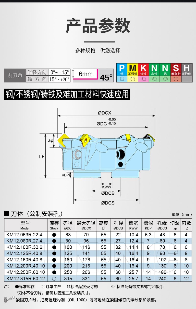 KM12/TSE12平面45度微调精加工镜面铣刀盘