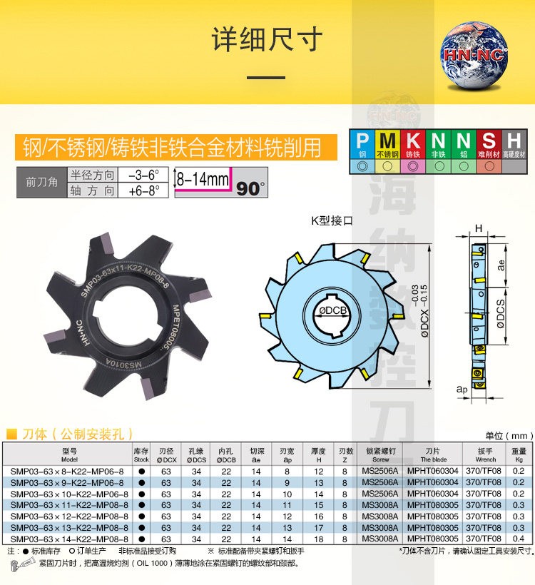 SMP03-63三面刃侧铣开槽数控铣刀盘