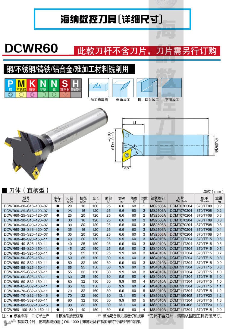 DCWR60度燕尾槽可转位鸠尾槽数控铣刀杆