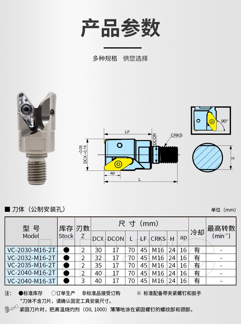 VX-1635航空铝合金高效直角粗加工锁牙铣刀头
