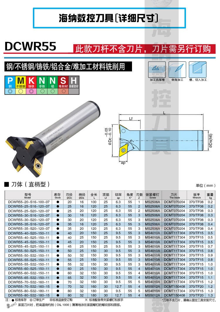 DCWR55度燕尾槽数控铣刀杆
