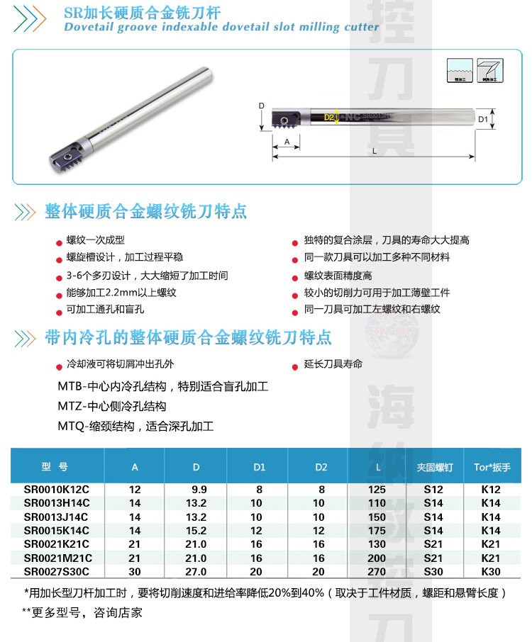 SR内冷内外螺纹梳齿铣刀杆