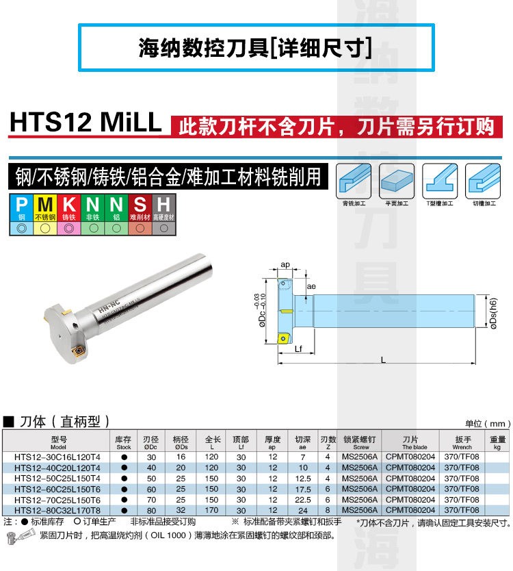 HTS12加工中心T型槽三面刃铣刀杆