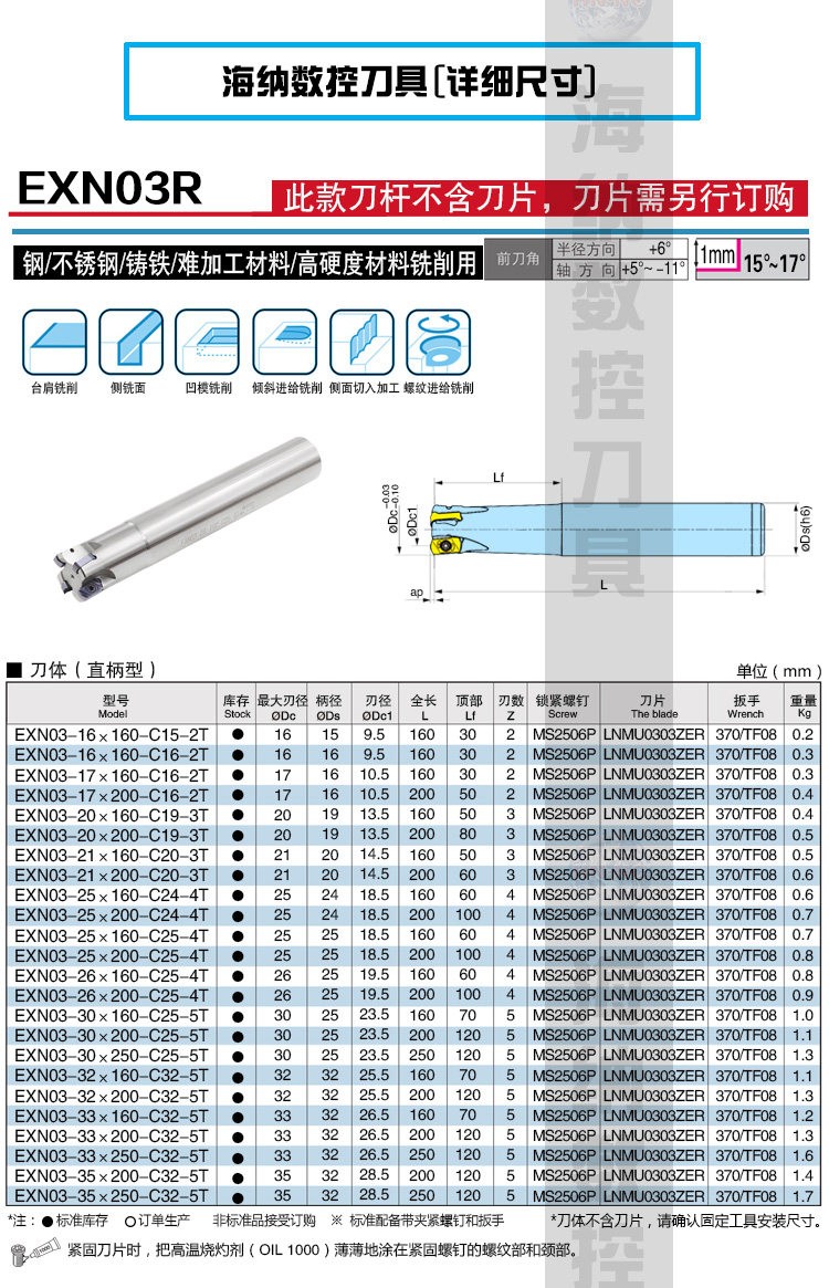 EXN03高速快进给铣刀杆