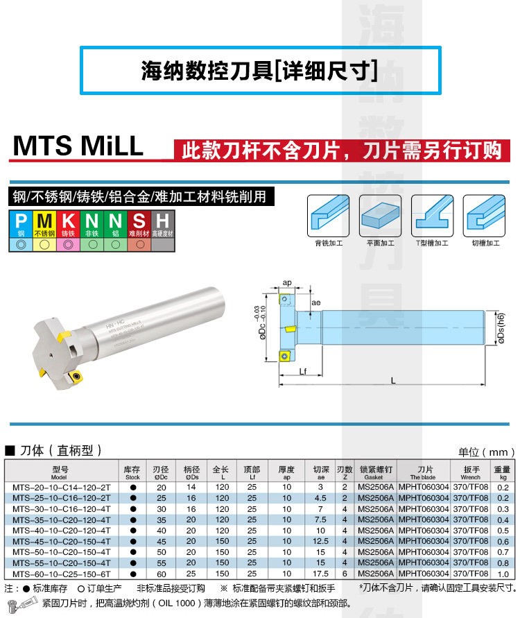 MTS-10三面刃T型槽铣刀杆