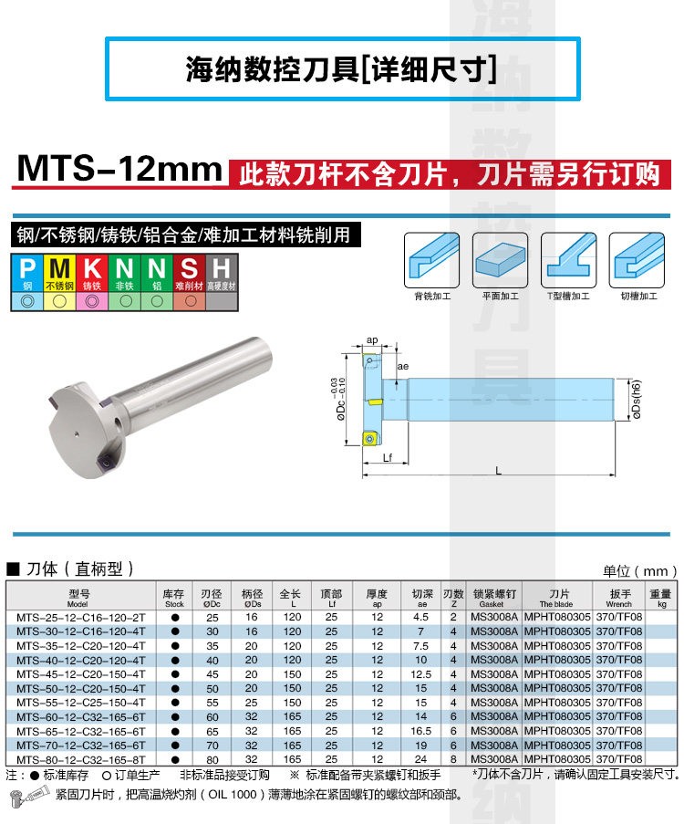 MTS-12三面刃T型槽铣刀杆