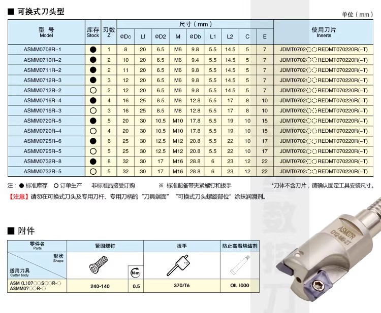 MDH-2320-R16-M16锁牙式圆鼻铣刀头