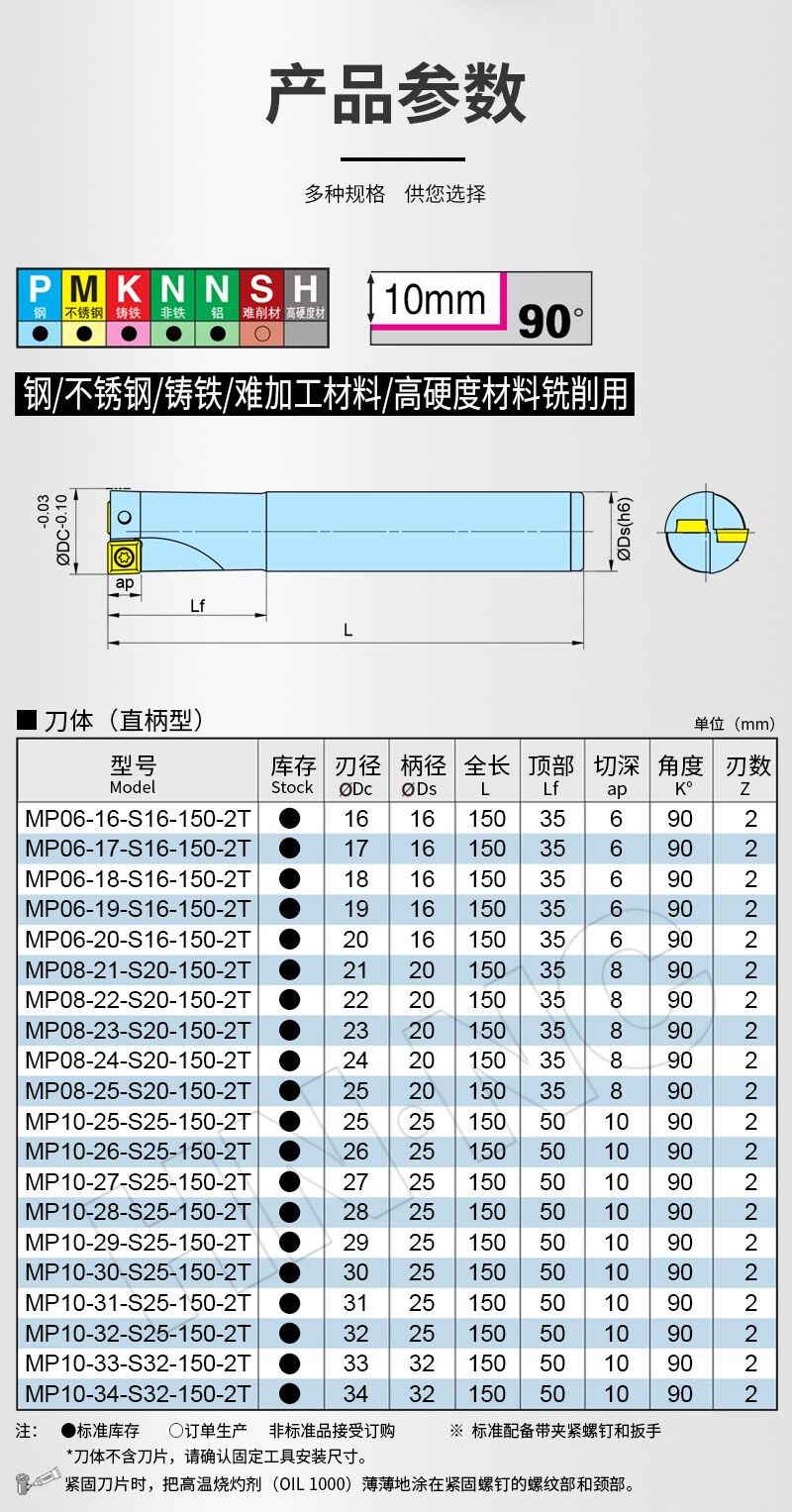 MP10锪孔90度平底过中心立铣刀杆硬质合金抗震数