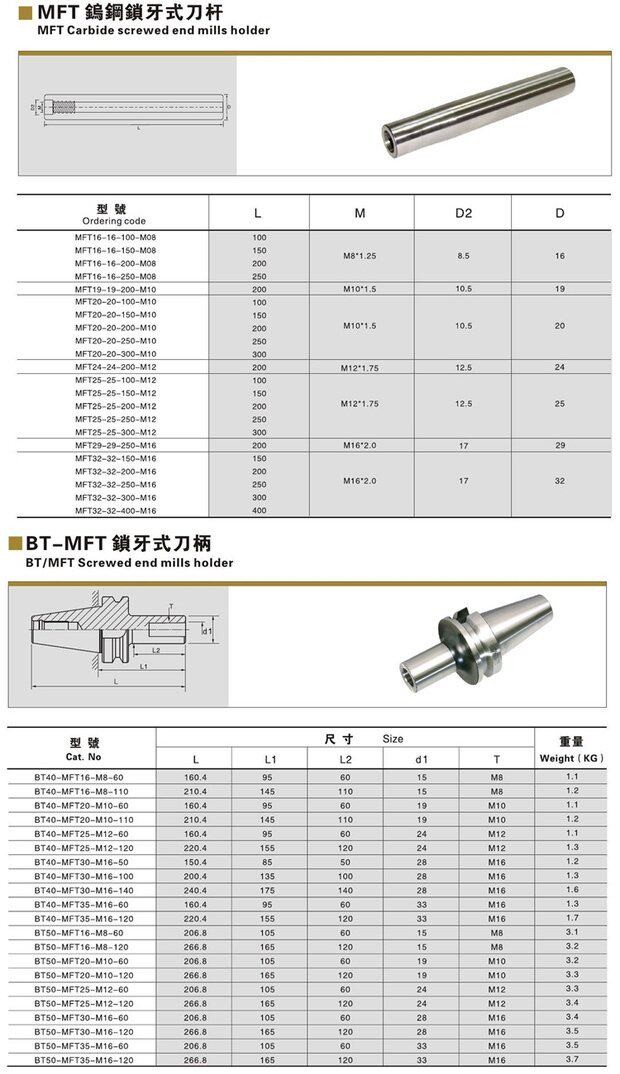 MFT钨钢抗震直柄螺纹连接铣刀杆