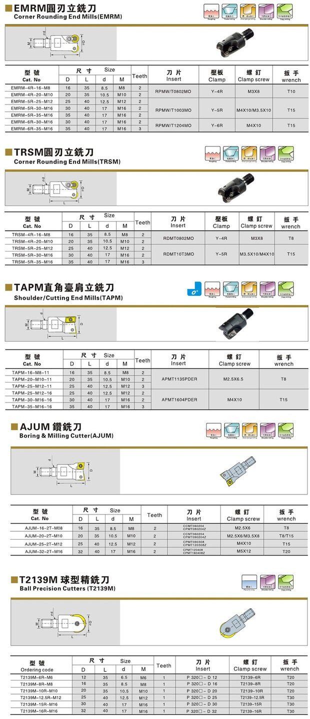 TRSM-4R圆鼻锁牙式数控立铣刀头