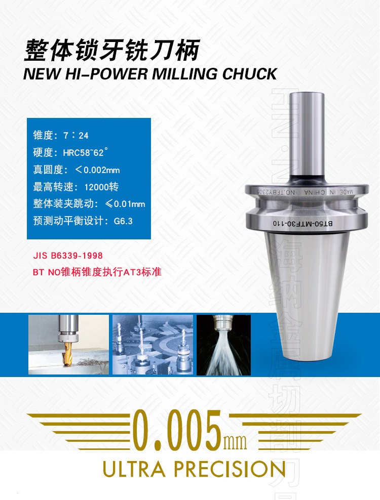 BT50-MFT锁牙螺纹连接铣刀头加工中心数控刀柄