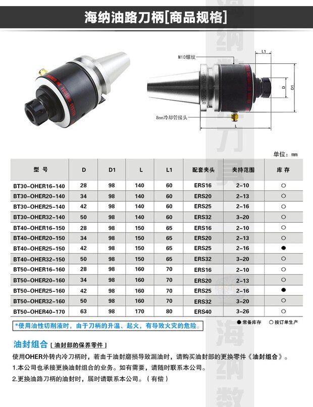 BT50-ER自动换刀外转内冷弹簧夹头油路刀柄