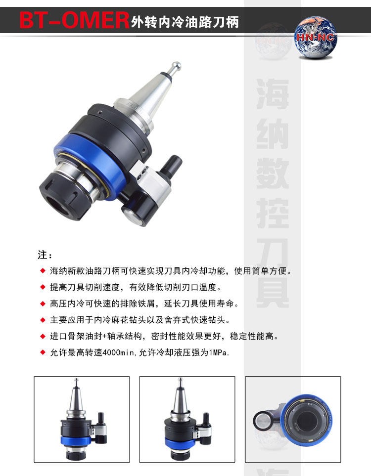 BT50-ER自动换刀外转内冷弹簧夹头油路刀柄