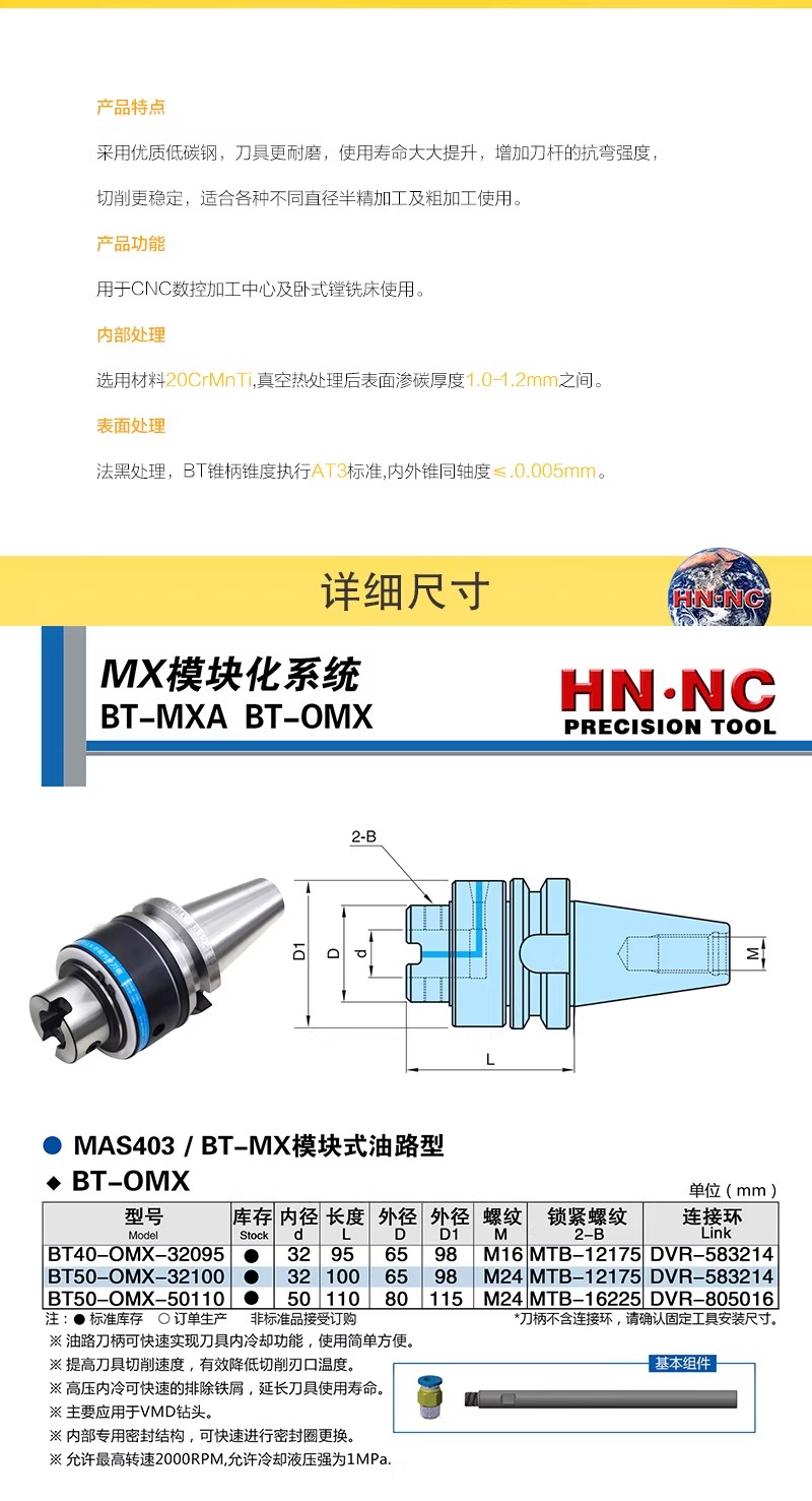 VMD暴力钻头BT50-OMX外转内冷油路刀柄